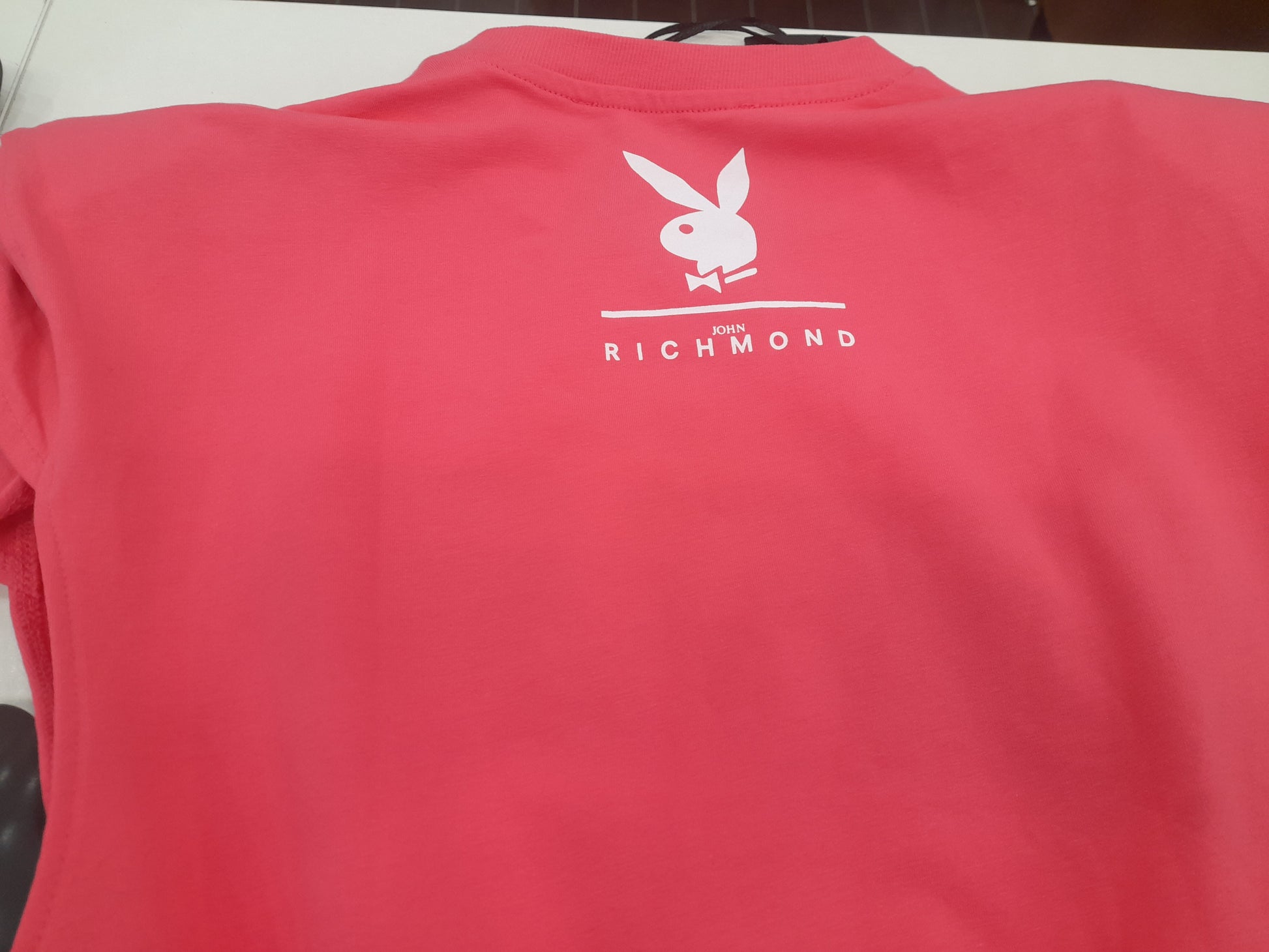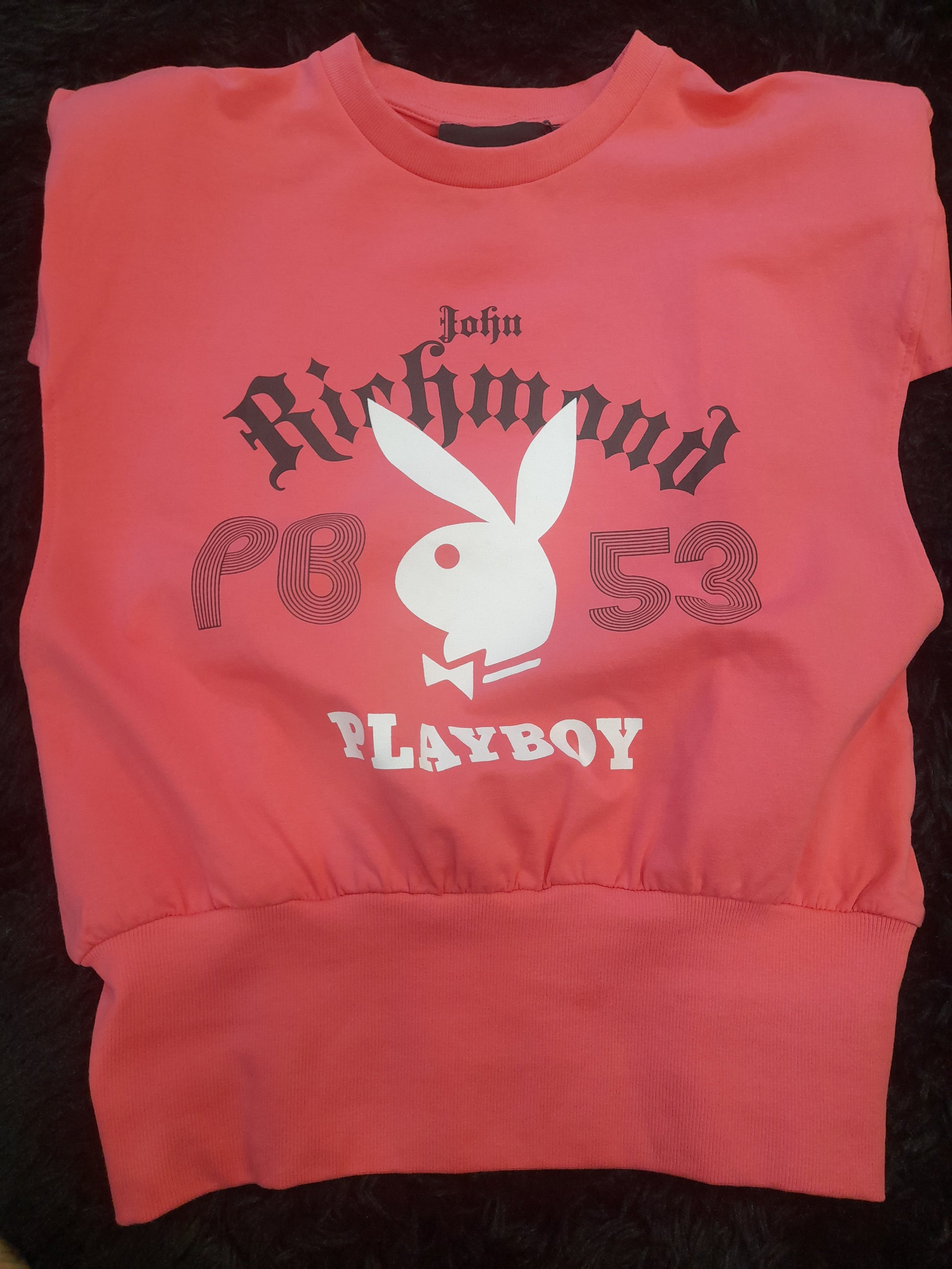 Maglietta giro manica in cotone, collo a giro con fascia a costine in vita, stampa logo.