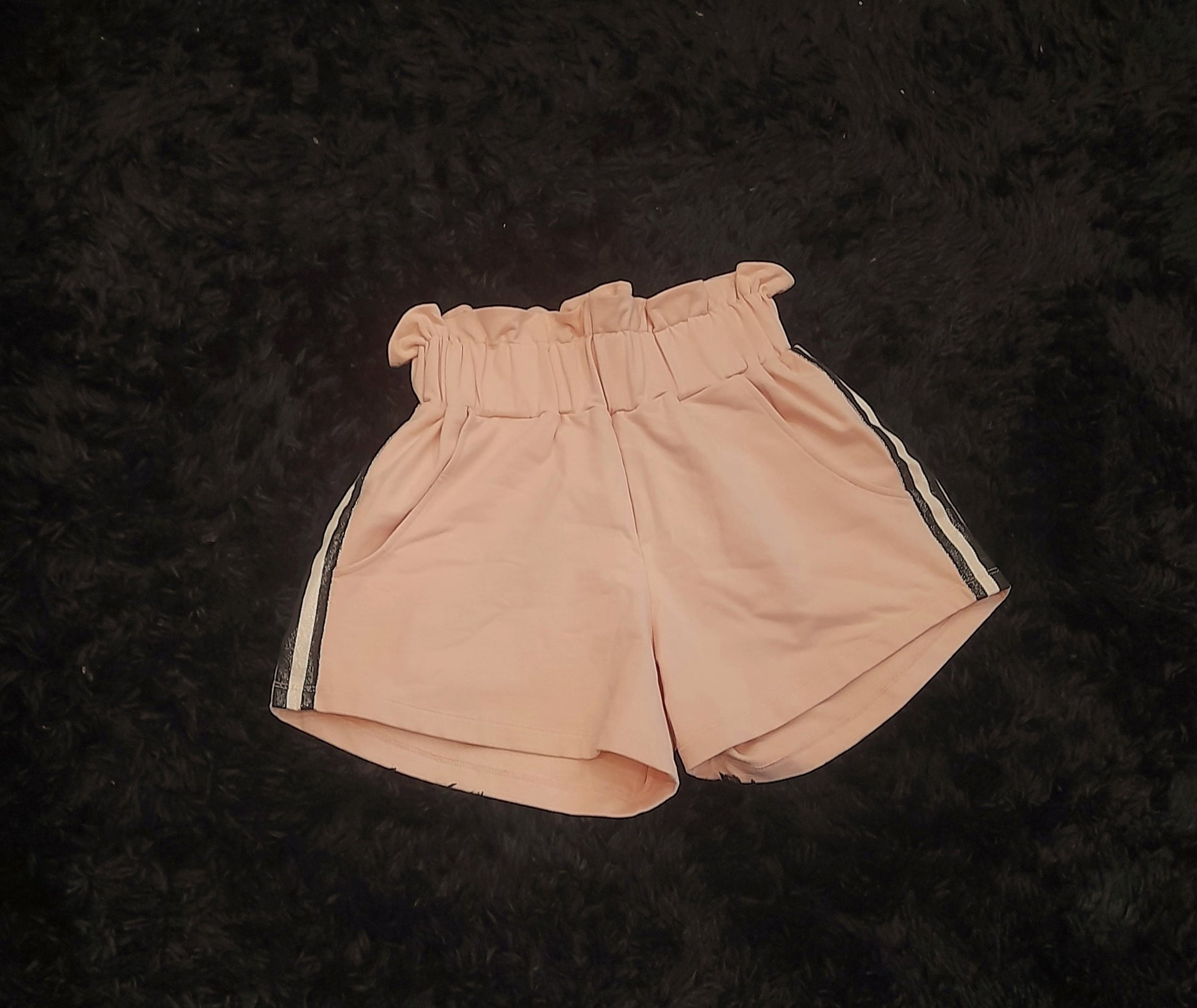 Shorts ragazza in cotone, con due tasche e due bande glitterate sui lati.