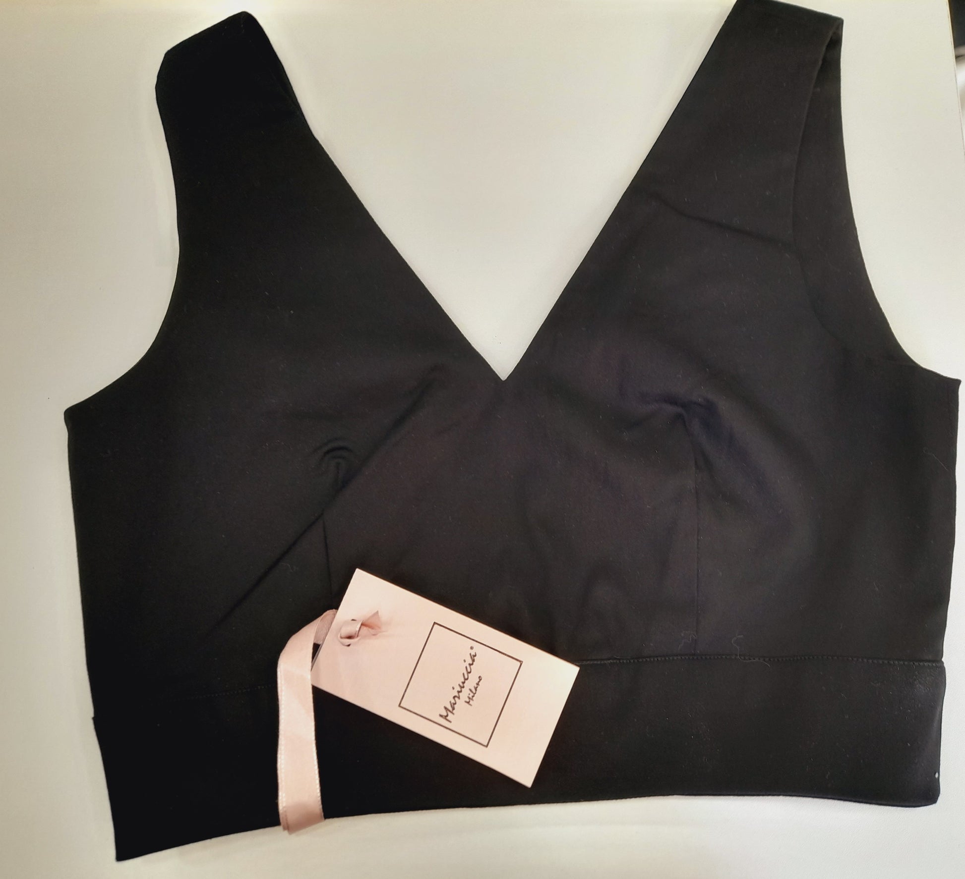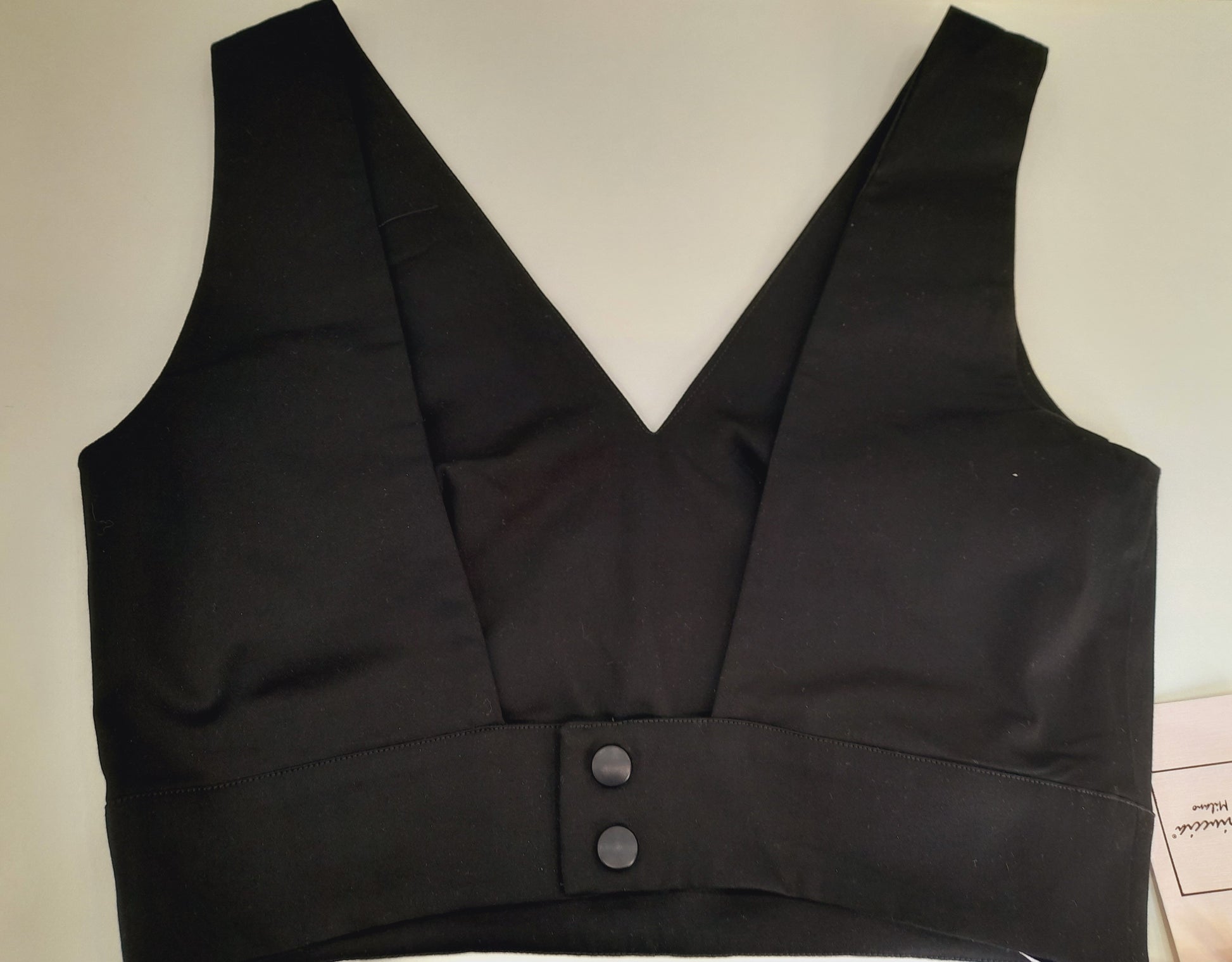 Top a canotta coto nero, 100% cotone, con due bottoni sulla fascia dietro.